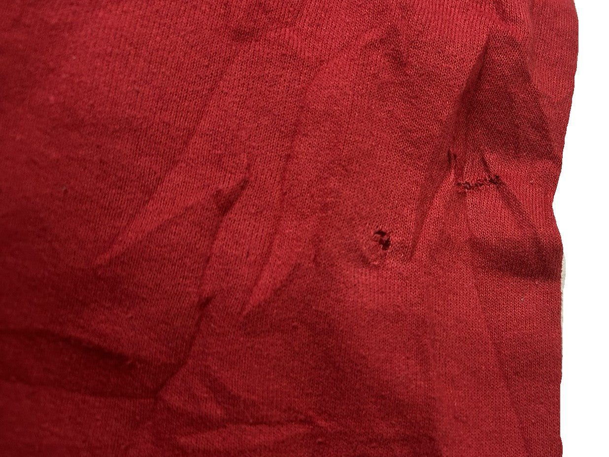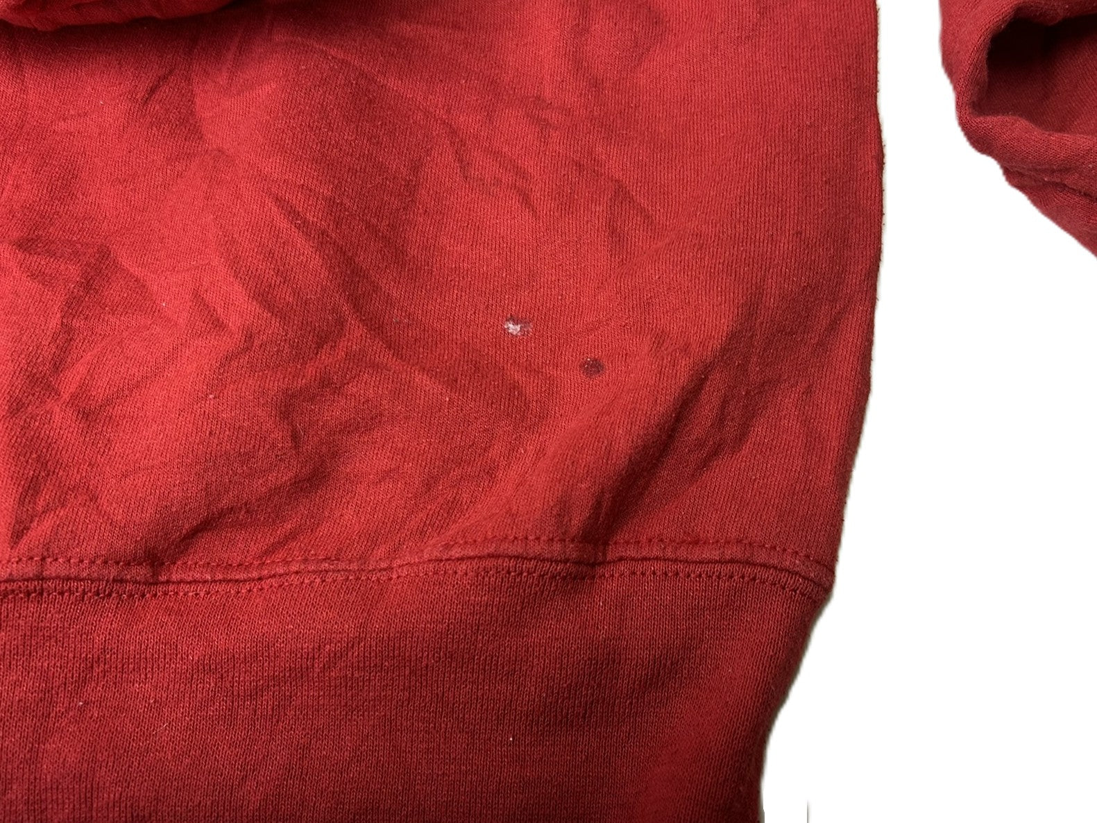 紐にほつれ、右下後ろに汚れあり、右袖に破れあり