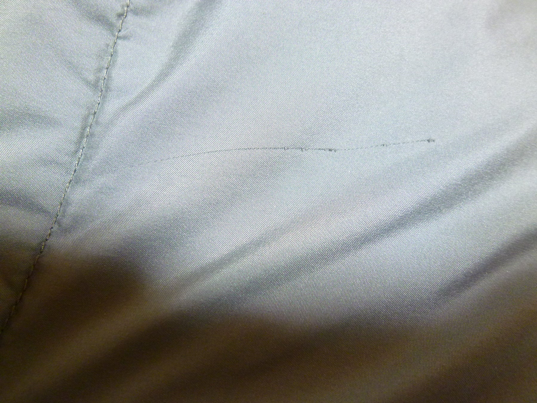 胸ポケットの右上に白い汚れ有り&背面の左右の肘辺りに汚れ有り&背面の右肩の付け根より10中にボールペンで書いた様な線の跡有り&背中の真ん中辺りに汚れ有り。