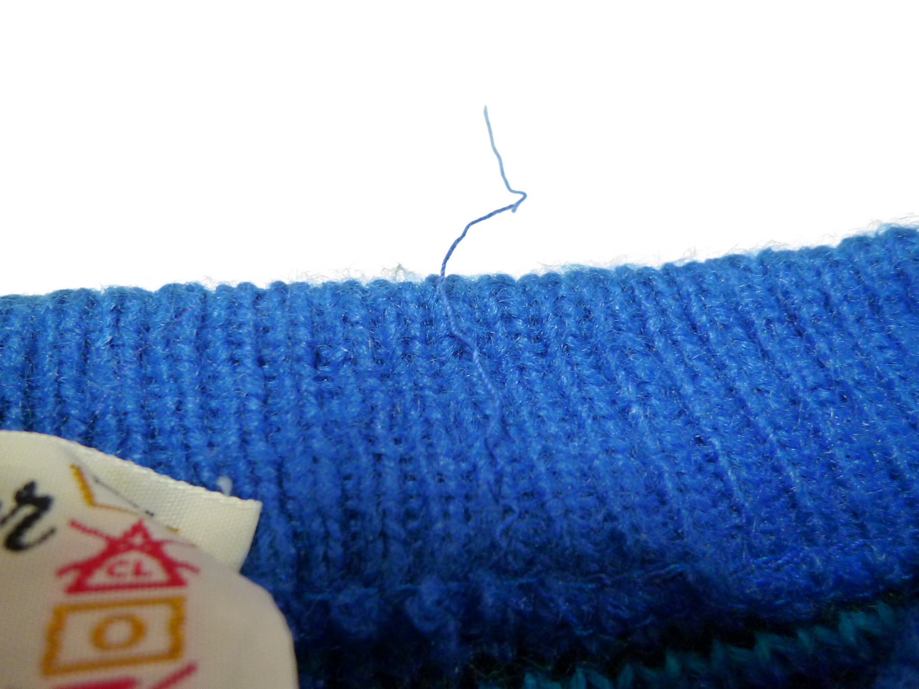 首浦のタグより左にほつれ有り&右肩にほつれ有り 毛玉あり