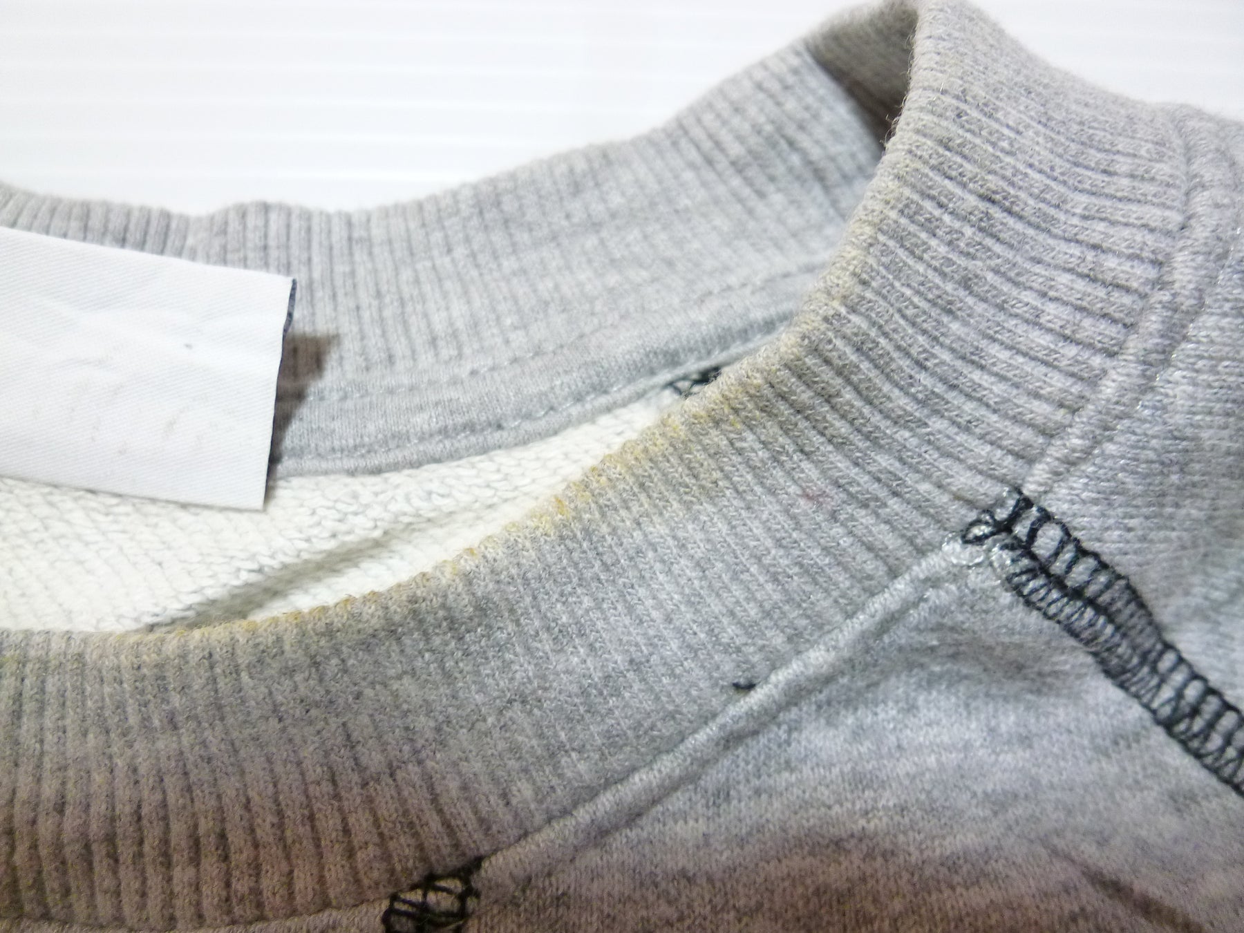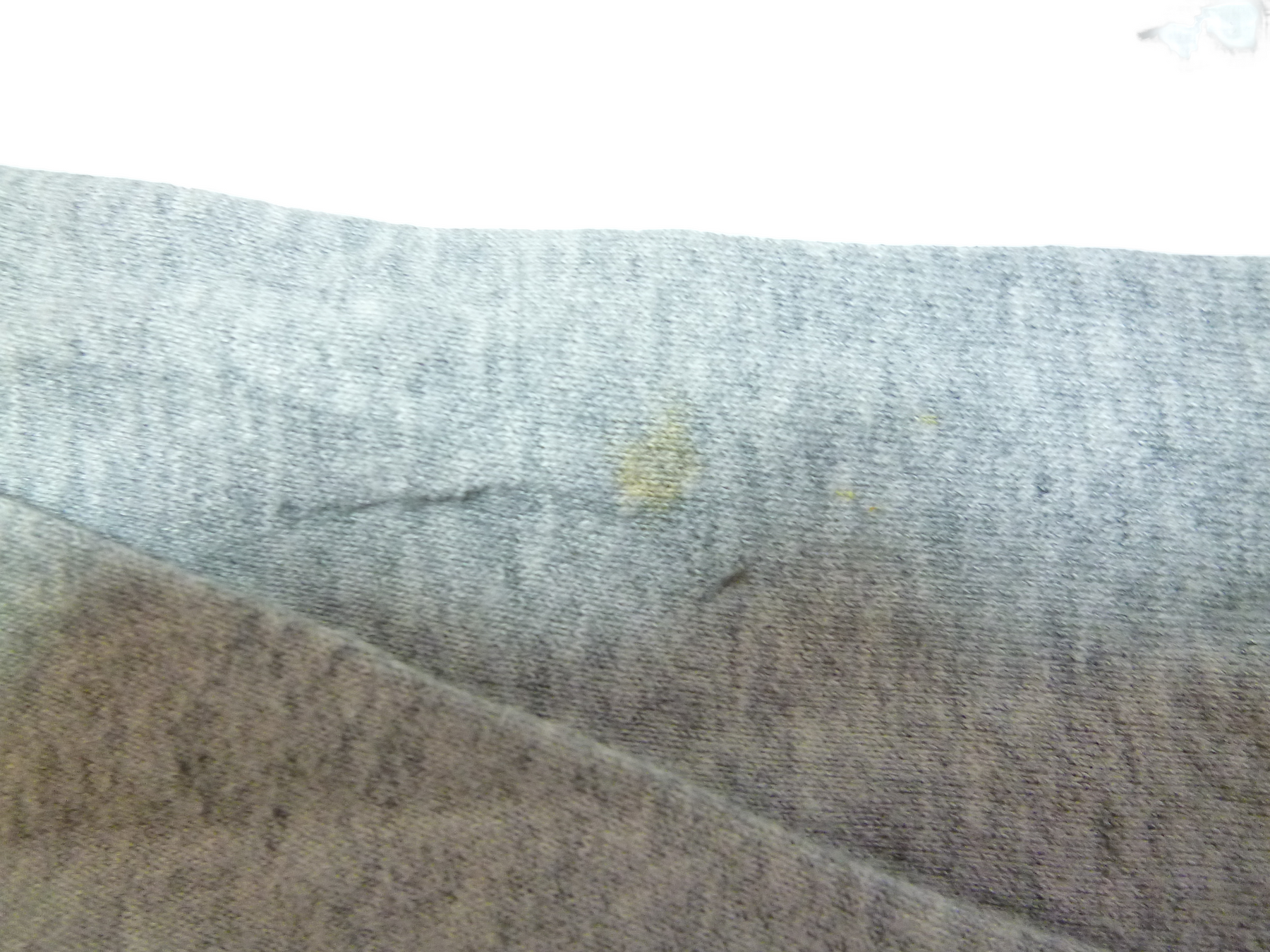 首の周りに黄ばみ有り&前面の右胸の辺りに汚れ有り&背面の右肘の上部に黄ばみ有り 毛羽立ちあり シワあり