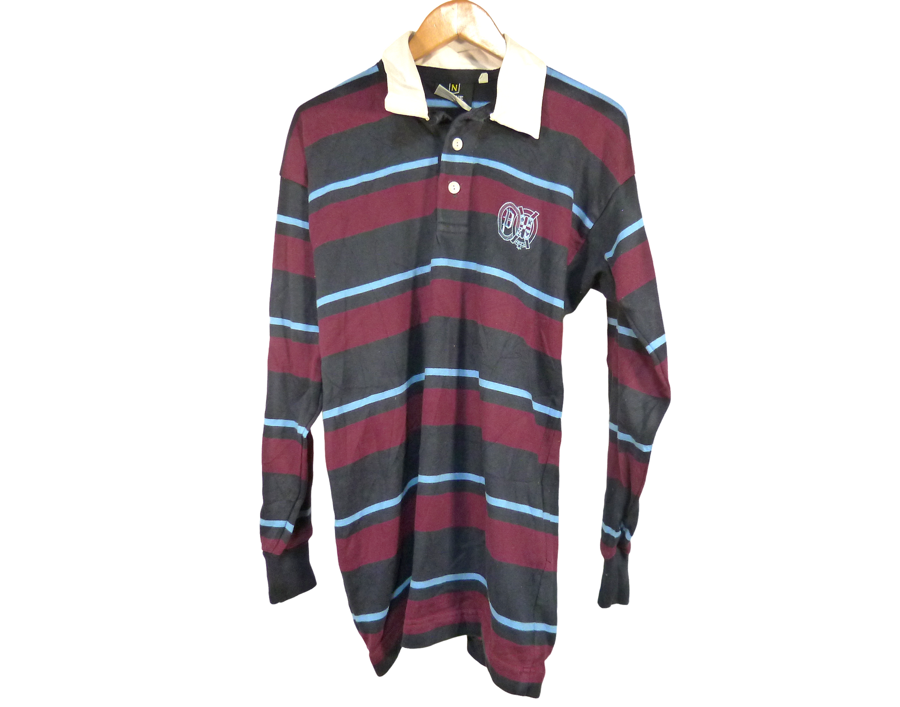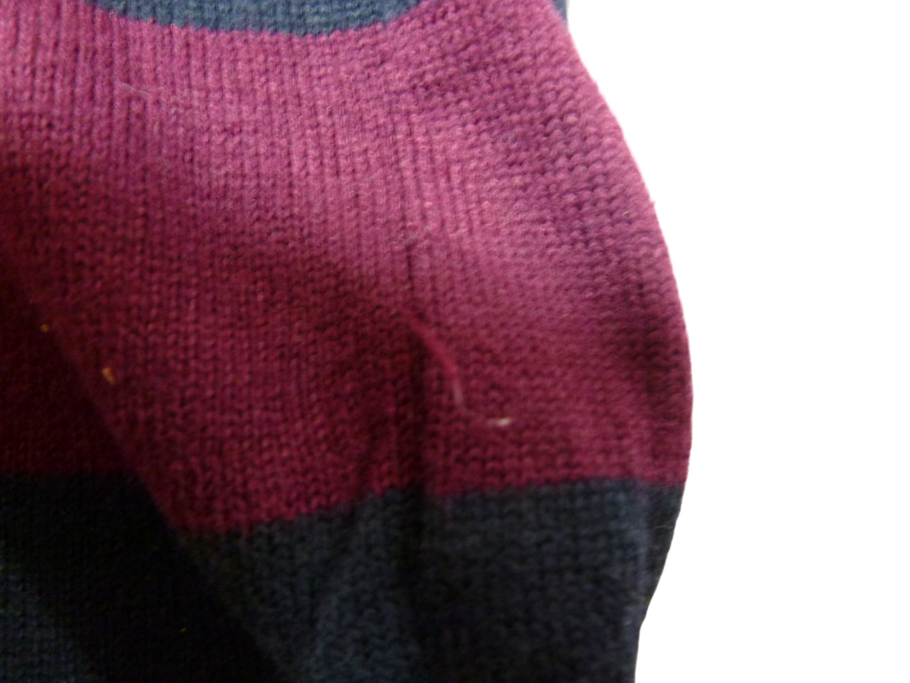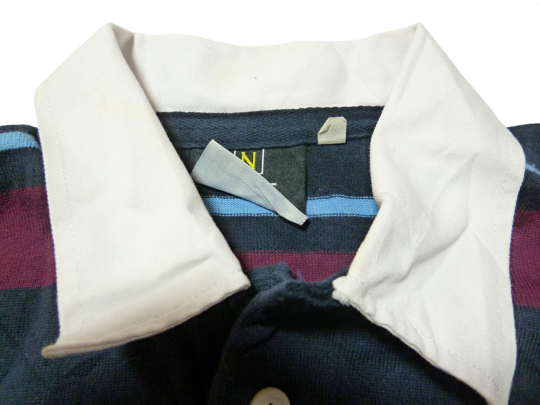 前面の左横にほつれ有り&襟の内部の首の部分に黄ばみ有り シワあり