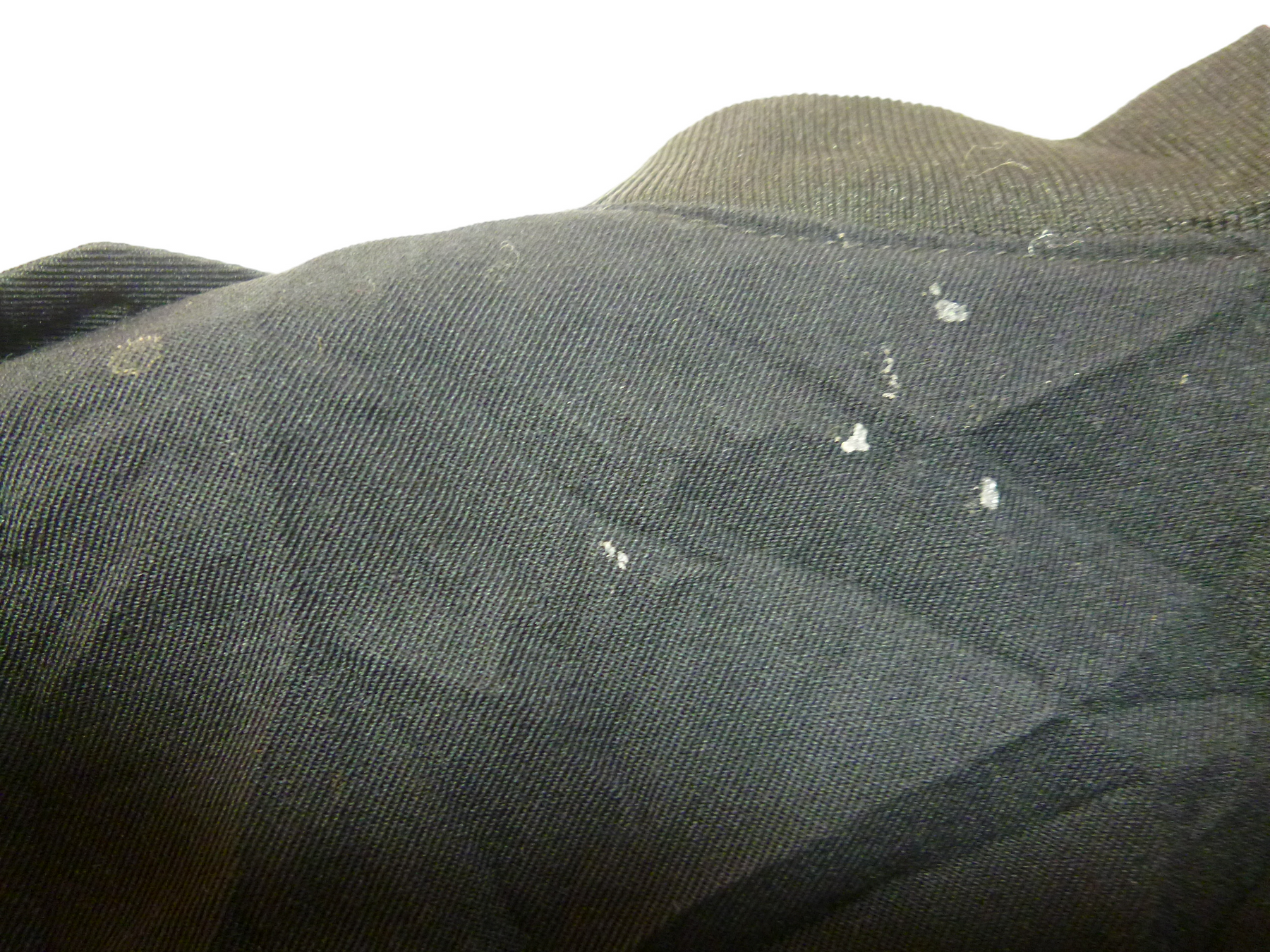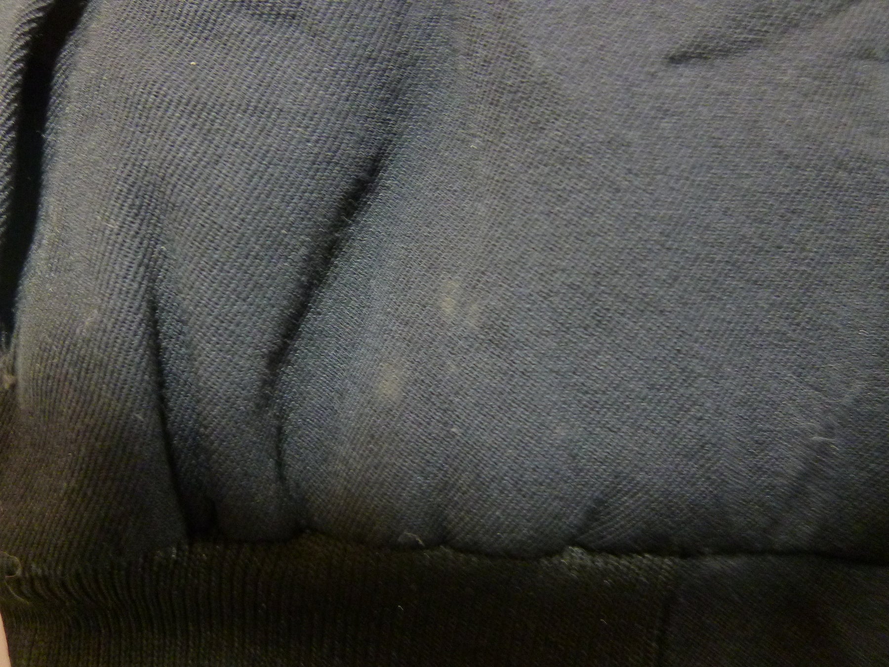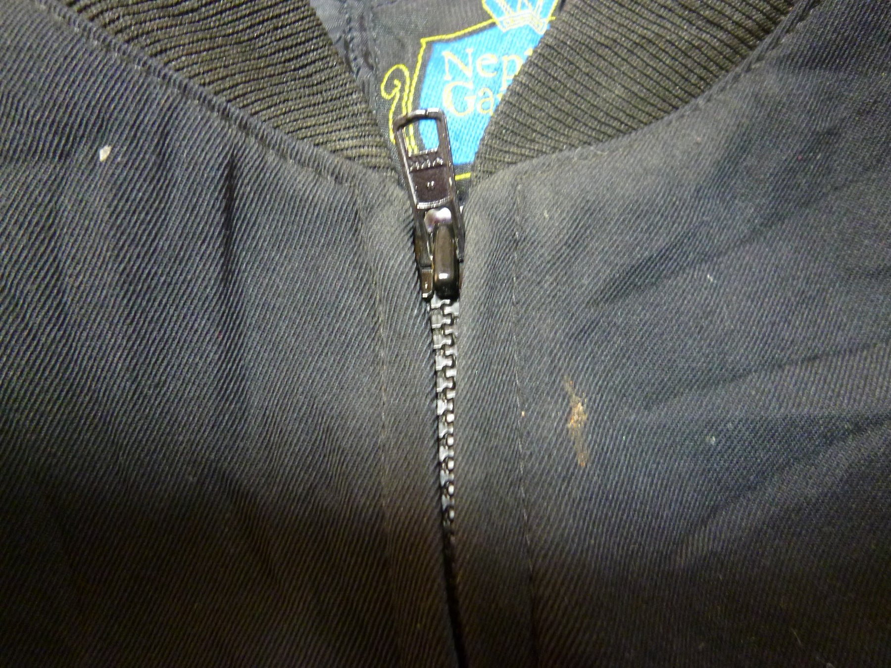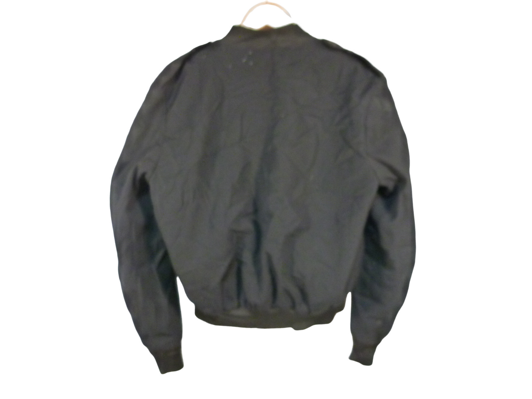 品質タグ無し&ファスナー破損あり10くらいしか開きません&前面の右半身の首の下と胸の下と裾付近に汚れ有り&前面の右半身の裾にほつれ有り&前面の右袖口より上に汚れ有り&背面の左肩の中央にかけて汚れが数ヶ所有り。